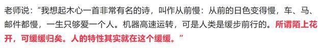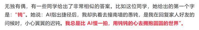 也有学生选“慢”或“钝”,强调人类愿意为一朵云、一束光停下脚步,哪怕效率低一点。