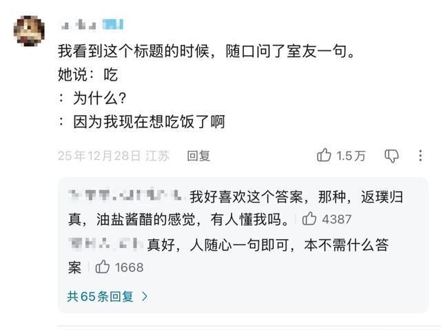 还有网友的答案让人感叹“人随心一句即可,本不需要什么答案”。