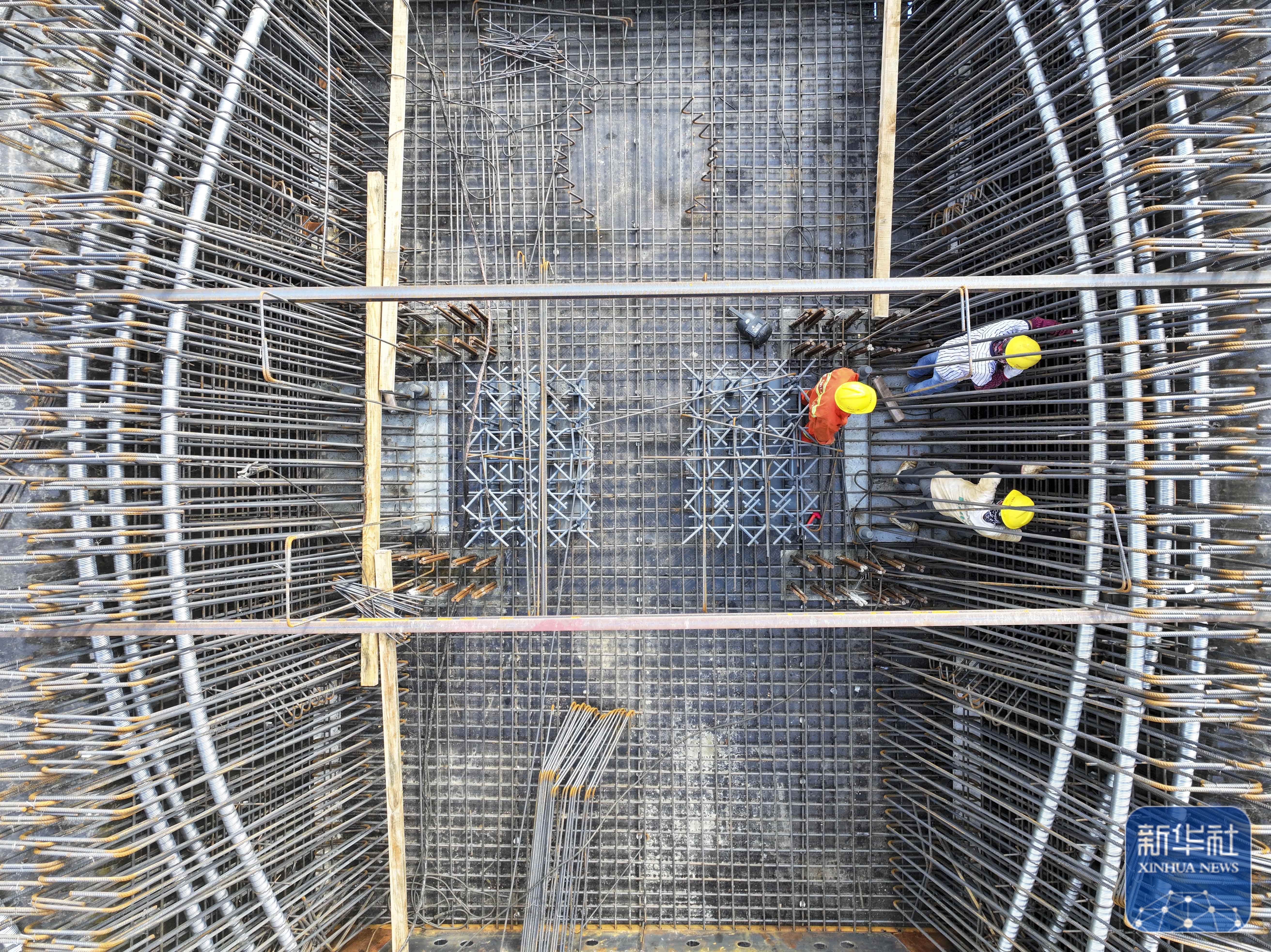 ↑ 10月1日,在重庆市两江新区,中建八局的施工人员在两江新区礼嘉创新中心项目进行绑钢筋作业。新华社记者 黄伟 摄